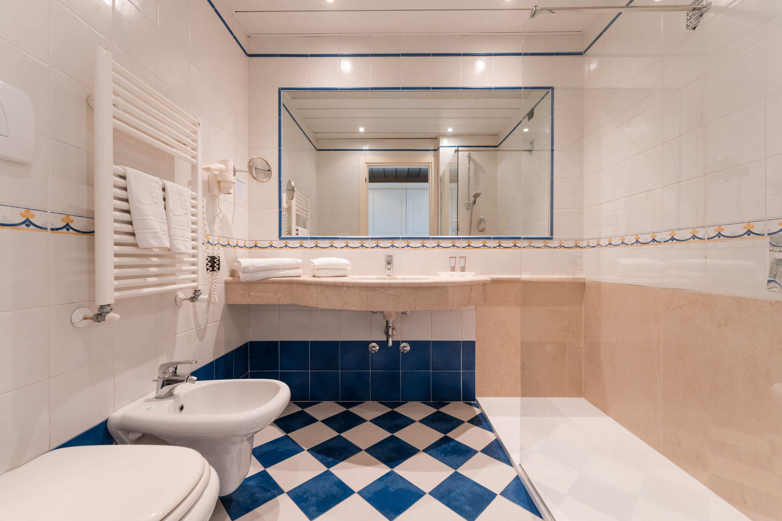 Accogliente e armoniosa, proprio come la tua famiglia. La Family Suite è pensata per regalare comfort e ampi spazi per te e tuoi bambini. Due camere da letto separate, soggiorno grande e luminoso con terrazza, bagno con doccia e pareti in vetro. Pavimento con parquet.