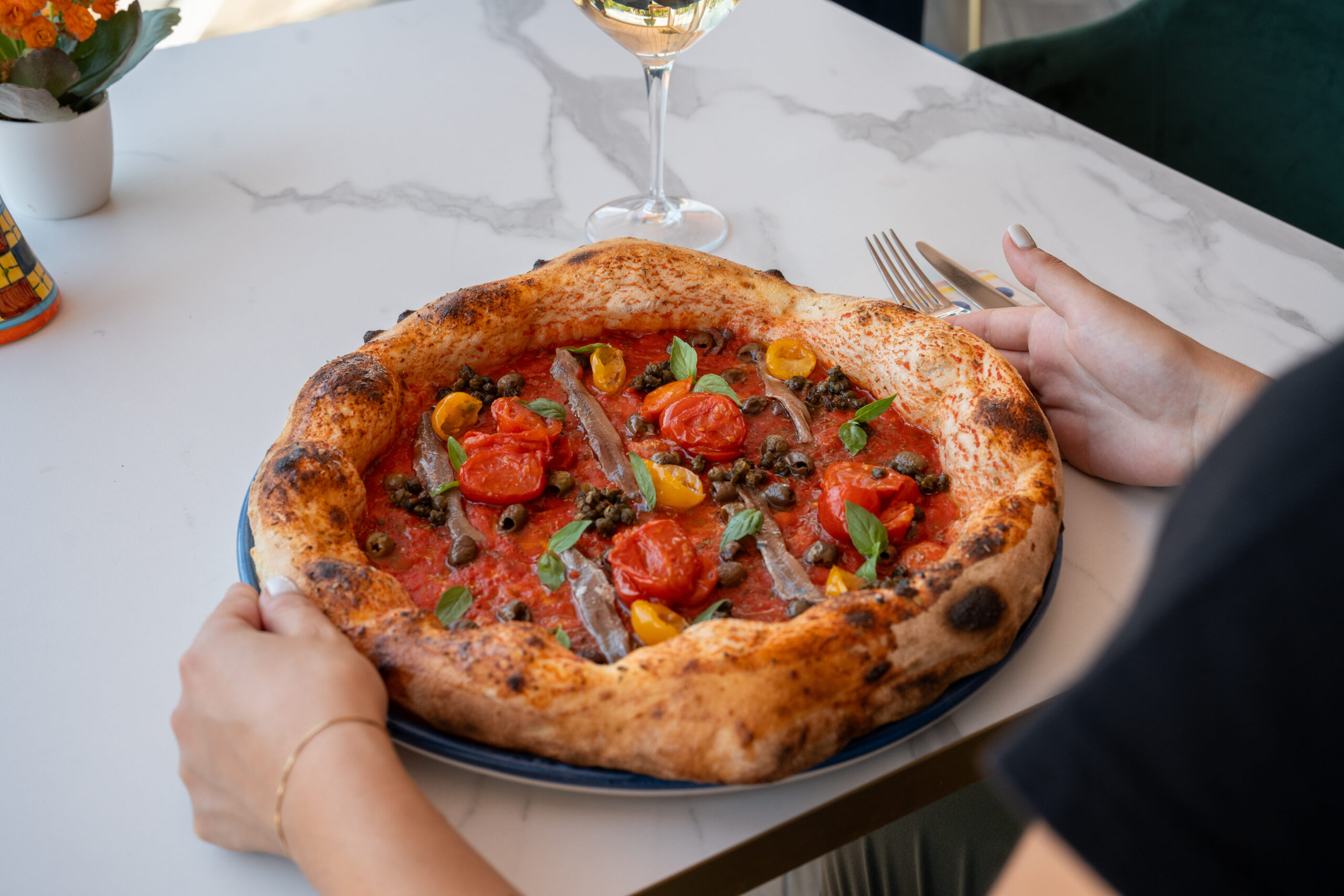 The menu is signed by Michelin-starred chef Giuseppe D’Aquino and brought to life by pizza chef Tommaso Lo Iacono, supported by a young and passionate team. Together, they offer creative Neapolitan pizzas made with top-quality ingredients, reinterpreting tradition with an innovative twist.